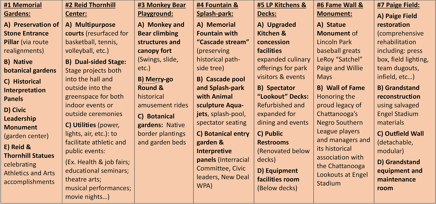 We are communicating with the City of Chattanooga and Erlanger to obtain park access. Park design and programming partners and sponsorships to restore the historic features and recreational amenities. The challenge is also the opportunity to build a multi-institutional collaboration in relationship with the local African American community to preserve Chattanooga's authentic history and culture, and elevate local ingenuity, health, youth self-mastery, and civic relationship.