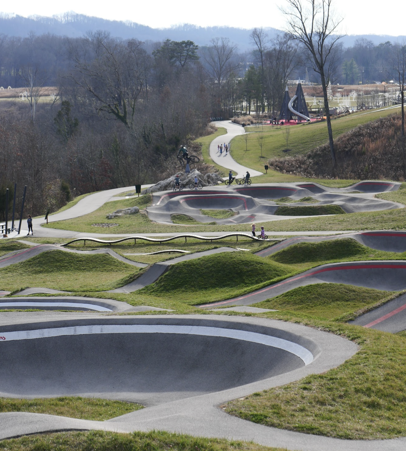 Land access – Securing the right location for a bike park is often one of the biggest challenges, requiring coordination across multiple parcels and agencies. However, in this case, we have a unique opportunity: Hamilton County-owned land along the Riverwalk that is ideally suited to launch a pilot bike park. This site provides immediate access, visibility, and terrain to get a high-quality, community-focused project off the ground. At the same time, the long-term vision for a full-scale regional bike park will require identifying and securing a larger parcel of land. The Riverwalk site allows us to build momentum, demonstrate impact, and grow community support while continuing to pursue a future flagship location. Funding – Developing a high-quality bike park requires capital for materials, equipment, and labor. While this is a meaningful investment, the project can be approached in phases and supplemented through partnerships, volunteer efforts, and grant funding. These obstacles are highly solvable. Cities across the country have successfully built community-focused mountain bike parks despite similar challenges. Examples include Knoxville, Bentonville, Nashville, Chattanooga, Asheville, and Austin. Many of these cities leveraged partnerships, volunteer labor, grant funding, and phased development to overcome land and funding hurdles—creating thriving bike park communities that attract riders of all ages and skill levels.